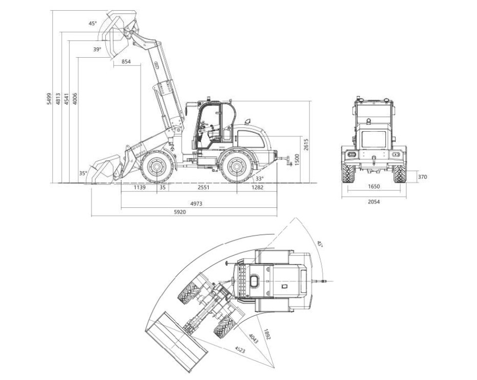 | Gesamtlänge (mit Standardschaufel): | 5920 mm |