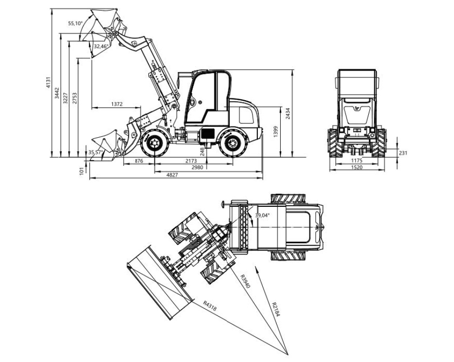 | Gesamtlänge (mit Standardschaufel): | 4827 mm |